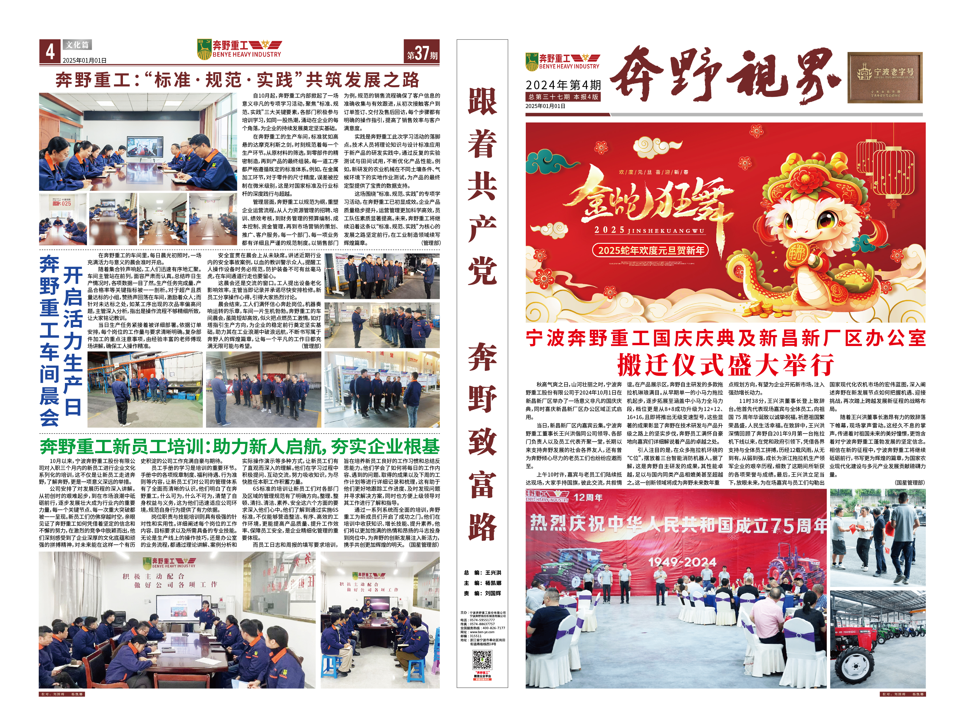 是一家非道路用農(nóng)用拖拉機整機及部件設(shè)備研發(fā)、制造、銷售、服務(wù)為一體的涉農(nóng)科研型生產(chǎn)企業(yè),專業(yè)生產(chǎn)寧波型奔野系列拖拉機,是國家高新技術(shù)企業(yè)、工信部專精特新“小巨人”企業(yè)、浙江省知名商號,寧波市級農(nóng)業(yè)龍頭企業(yè)、脫貧攻堅-產(chǎn)業(yè)合作樣板企業(yè)、鄉(xiāng)村振興先進集體,在寧波、新昌、吉林等地均設(shè)有生產(chǎn)基地,占地150多畝。公司現(xiàn)有技術(shù)骨干30多人,零部件自制化水平達到30%以上。公司目前擁有發(fā)明專利10余項,實用新型專利、外觀專利、版權(quán)近50項,擁有自主的知識產(chǎn)權(quán)保護品牌。公司所處的農(nóng)業(yè)農(nóng)機領(lǐng)域是國家重點關(guān)注和保障的、關(guān)乎國計民生的領(lǐng)域,得到國家和地方政府的大力支持,行業(yè)發(fā)展勢頭良好。